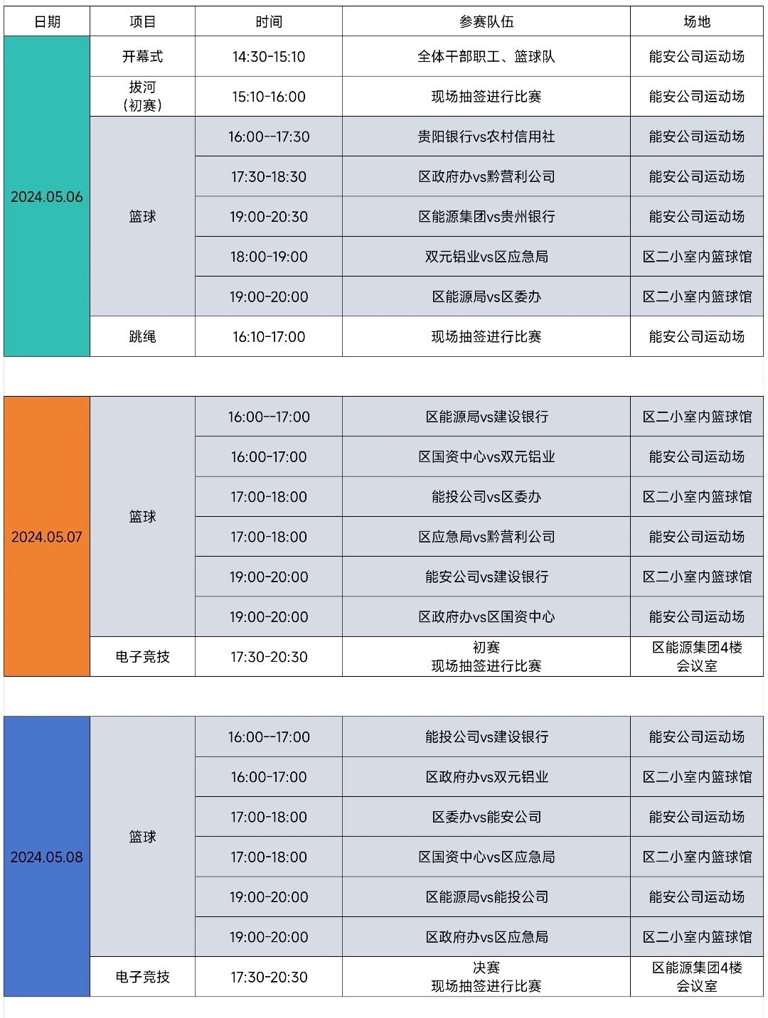 本屆職工運動會舉辦時間為5月6日-11日,比賽設(shè)有籃球、拔河、羽毛球、兵兵球、跳繩和電子競技等多個項目,不僅有展現(xiàn)水平的個人項目,還有考驗協(xié)作的團體競賽。我們期待每一位職工都能積極參與其中,在運動中尋找樂趣,在競爭中超越自我。